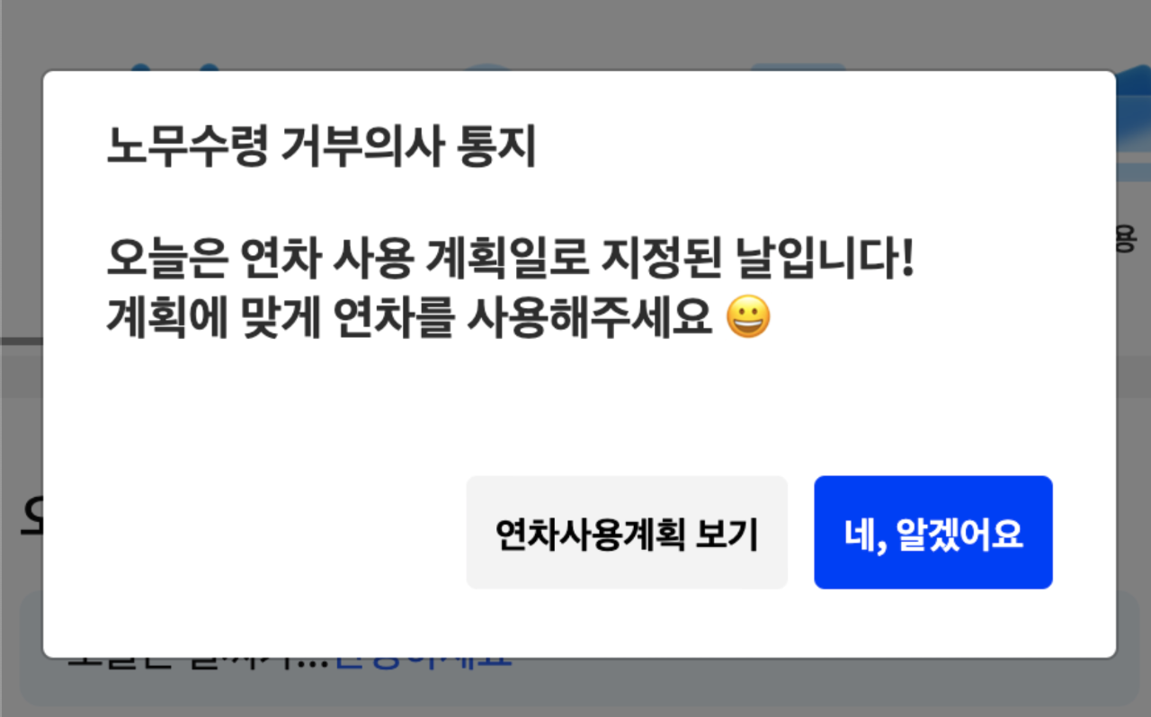 연차 촉진 해당 일의 경우에는 아래와 같이 화면이 보입니다.