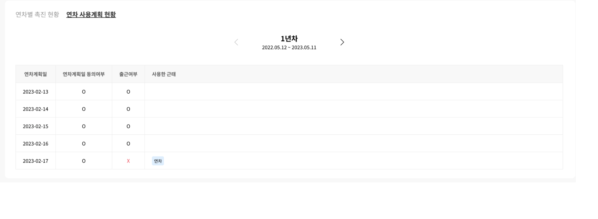 연차 소진 계획이 제출됨 |