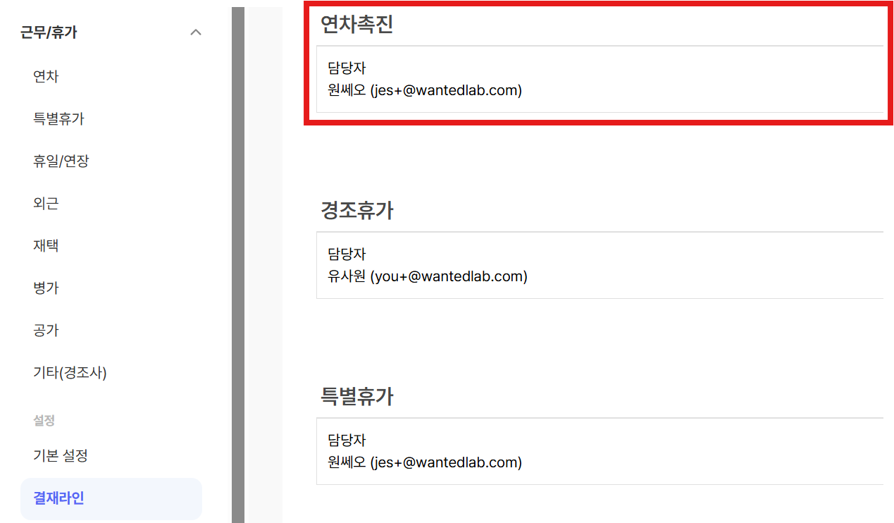 2. 연차 촉진 기능 담당자 설정하기