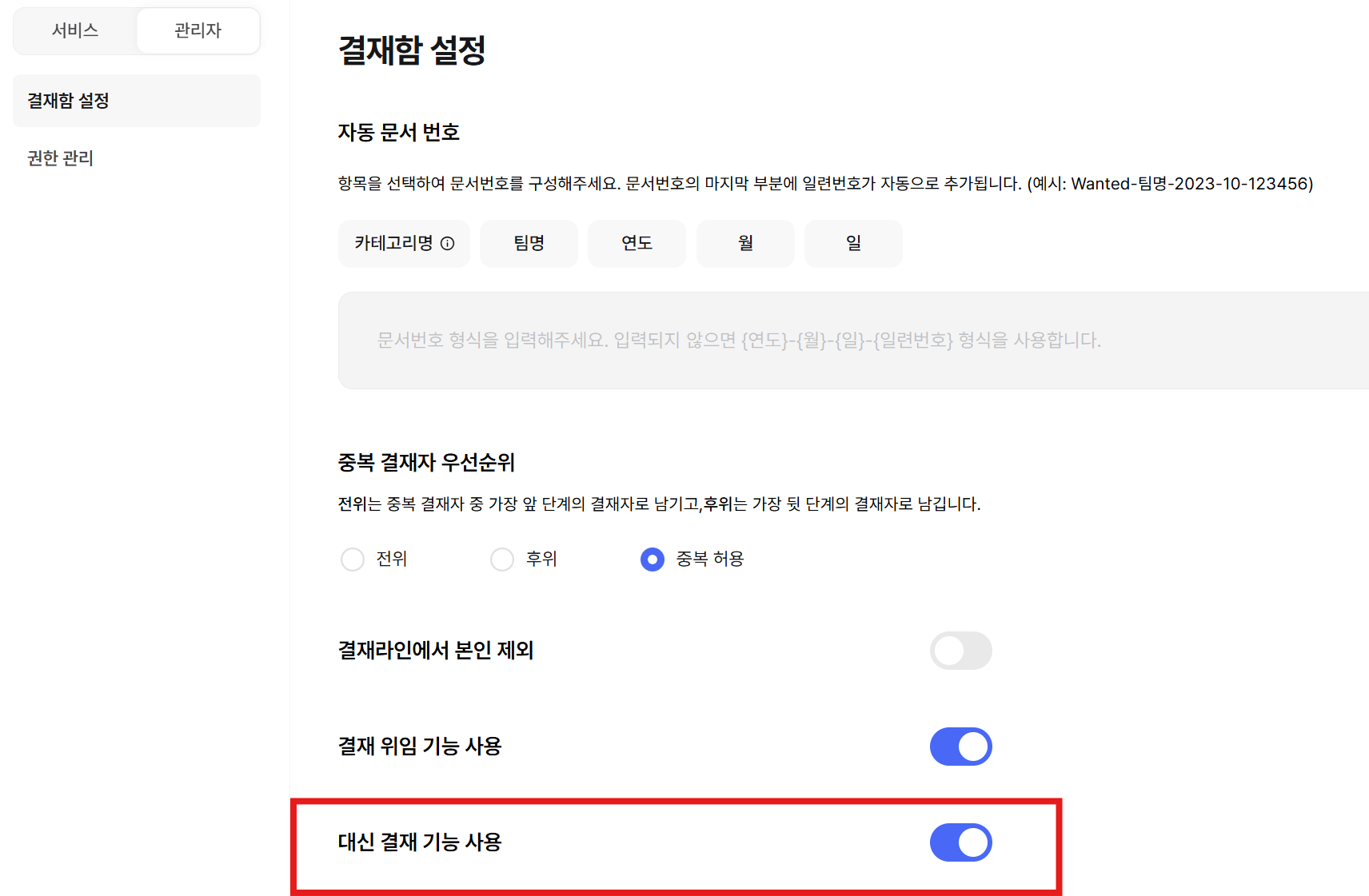 대신 결재 기능 활성화 방법